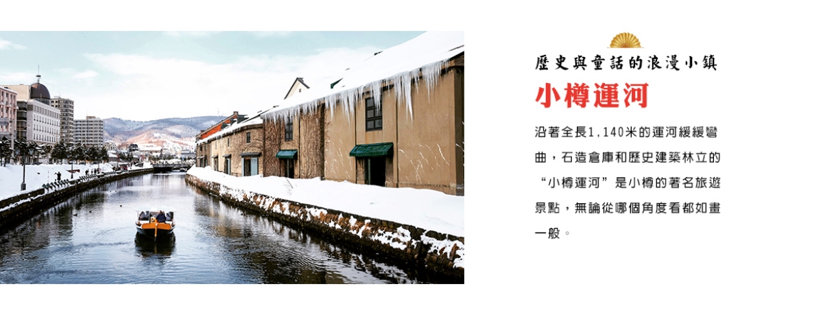 【小樽運河】面臨日本海,從明治時代起就是國際港都,深受歐洲風情影響,整個市街呈現濃厚的異國風情,運河兩旁的倉庫群,以及大正時代的建築群,共同烘托出小樽運河的風情萬種。爾後參觀素有玻璃工房盛名的【北一硝子館】,為代表小樽的玻璃工藝店,展示全世界最精緻的玻璃工藝品與油燈。還有地標之一的【音樂盒博物館】,更是不可錯過的景點,別忘了在鐘塔前照張紀念照再入館參觀喔!博物館挑高9m充滿開放感的建築,展示販賣著獨創商品到高級音樂盒約有15,000件作品。而【銀之鐘咖啡館】是一棟西式洋樓,銀之鐘原是指在北海道列車在小樽開通時,車站上所使用的鐘,稱之為「開拓の鐘」,不論甚麼時候,鐘受到光線的反射照耀,永遠都閃著銀色的光,因此取銀之鐘的店名也有小樽市代表意思。
