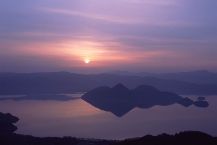 【洞爺湖】火山噴火而成,是北海道第三大湖,由於地處溫泉區,湖面在冬天也不會凍結,是日本最北端的不凍湖。洞爺湖是北海道航空路的出入口,位於新千歲機場南方約一百廿公里,呈現一片清爽的淺藍色調景觀是以破火山口湖的洞爺湖為中心的觀光地。湖畔到處散布溫泉、溫泉旅館、飯店,櫛比鱗次。