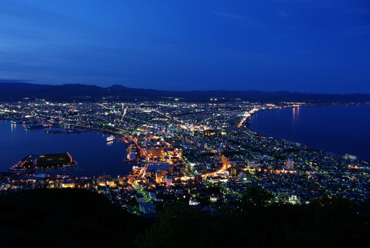 【函館夜景纜車】隨著車廂節節升高,開闊的美麗景色也逐一映入眼簾,函館港區與璀璨的市區燈火在眼前展開,抵達山頂站即為展望台,受惠於兩側為海的地形之利,站在函館山的山頂即可飽覽與義大利拿坡里和香港並稱世界三大夜景之一,宛如寶石般璀璨動人的函館夜景,美的讓人無法用筆墨形容,絕對實至名歸。