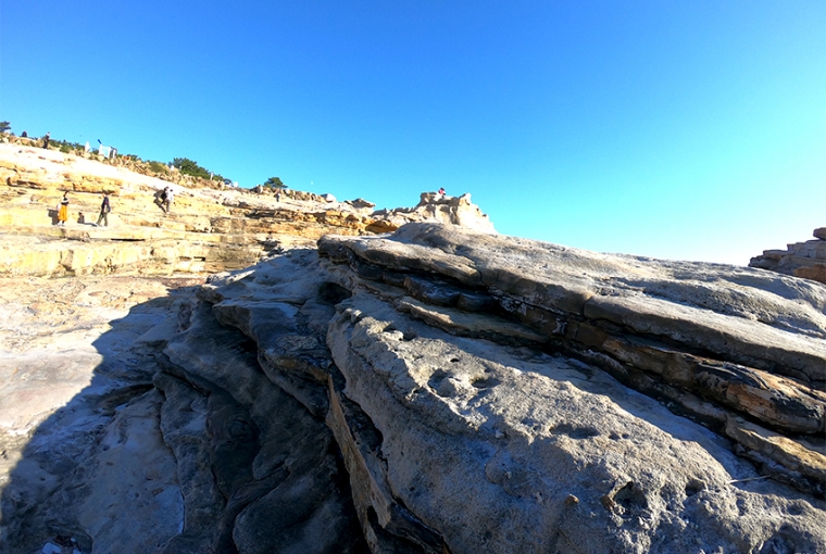 【三段壁】位於和歌山白濱町海濱,是一座朝向太平洋的一段蜿蜒2公里、50米高的海蝕懸崖,在億萬年前因為海底火山地層變動而形成的奇景,呈階梯狀直落而下宏偉壯觀;來到這裡還有讓人不得不佩服前人的聰明因為單從外觀看似平凡卻暗藏玄機,搭乘電梯深入36米下的洞窟細一看竟別有洞天,傳說這裡曾是日本古代熊野水軍的訓練基地,在日本源平之戰時,熊野水軍善用地理資源而得到勝利,步行在古道中還隱約受到那當時戰爭的緊張氣氛,為了紀念熊野水軍,在此也放置了水軍將領的「仿頭盔及軍服」供遊客拍照留念,而在洞窟的底頭還供奉著守護人們平安幸福的水神「辯財天」以及十六名童子神像,再順著步道前進可以觀賞到岩壁,因長期受到海浪拍打侵蝕而形成各種奇形怪狀的岩石景觀或您可以走近到崖邊近細細聆聽海濤怒吼。