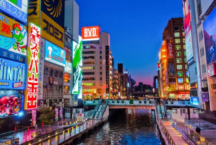 【道頓堀】大阪相當重要的美食激戰區,放眼望去盡是五光十色的料理招牌,螃蟹、河豚……無不讓人食指大動,不但料理好吃,也滿足你對美食的慾望。這裡也有電影院、劇場,充滿歡樂和生氣的區域。沿著戎橋到太左衛門橋間興建的步道,連接著河流兩岸的店家,是遊客酒足飯飽後散步、小憩的好地方,有可供休息的座椅,可於羅曼蒂克的氣氛中欣賞夜晚海岸美景,悠閒浪漫