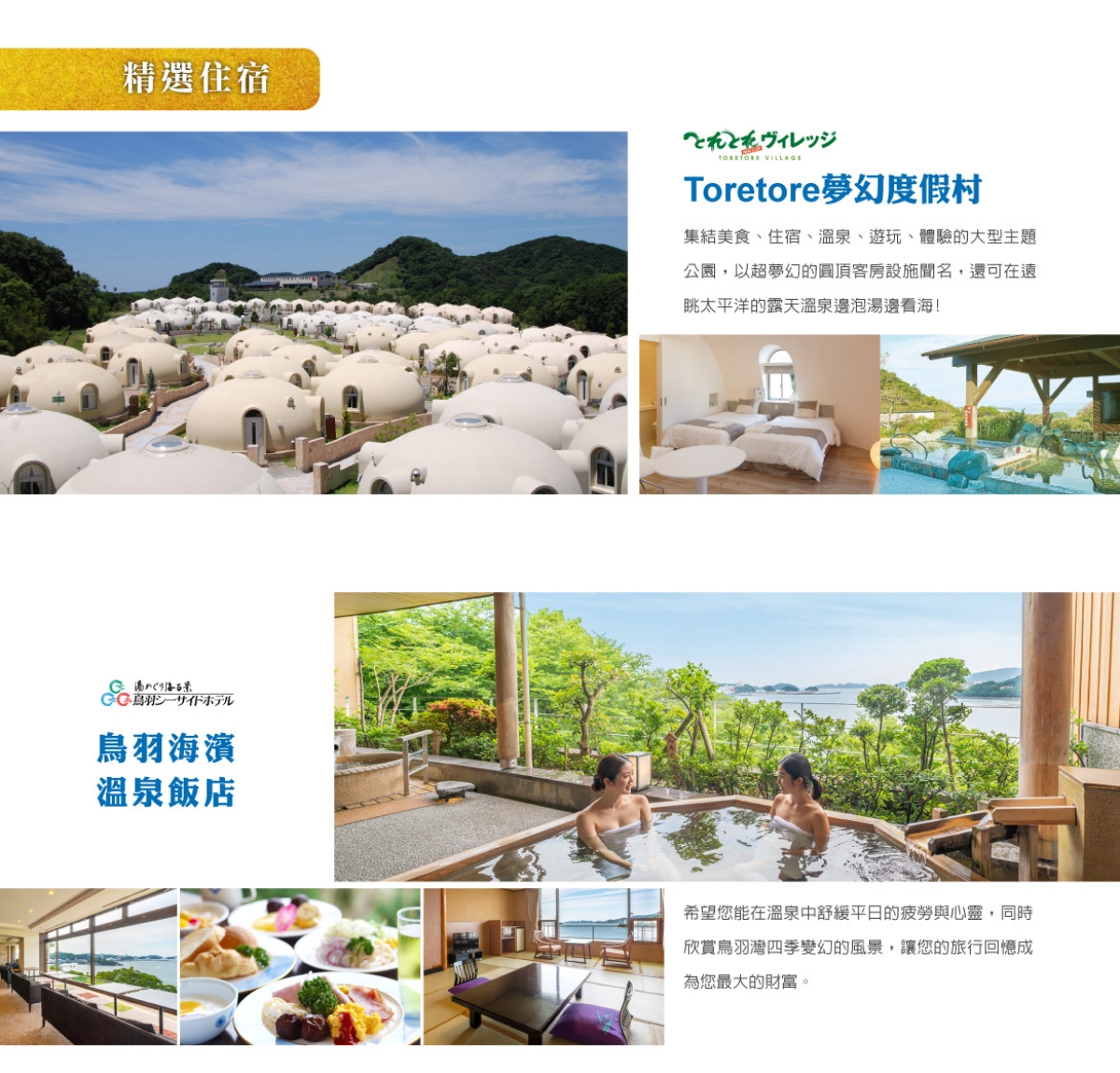 【白濱溫泉】位於南紀熊野地區,周遭是鬱鬱蔥蔥的青山,美不勝收。其中更以擁有數世紀歷史的白濱溫泉最為著名而獨特,這個溫泉度假勝地的歷史長達 1,300 年,在這裡貴賓可以一邊泡溫泉、一邊欣賞到浩渺的太平洋景色。