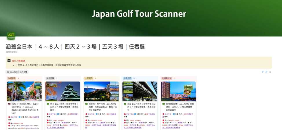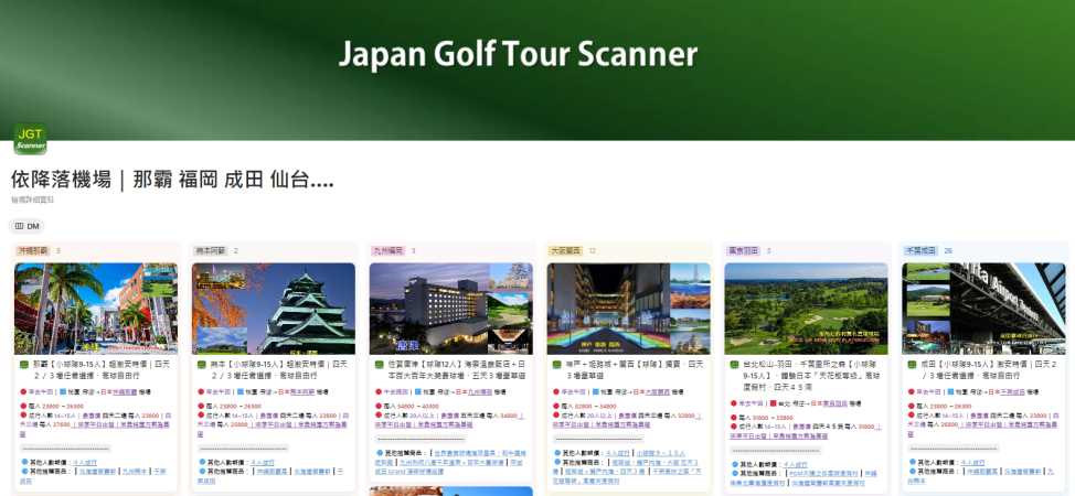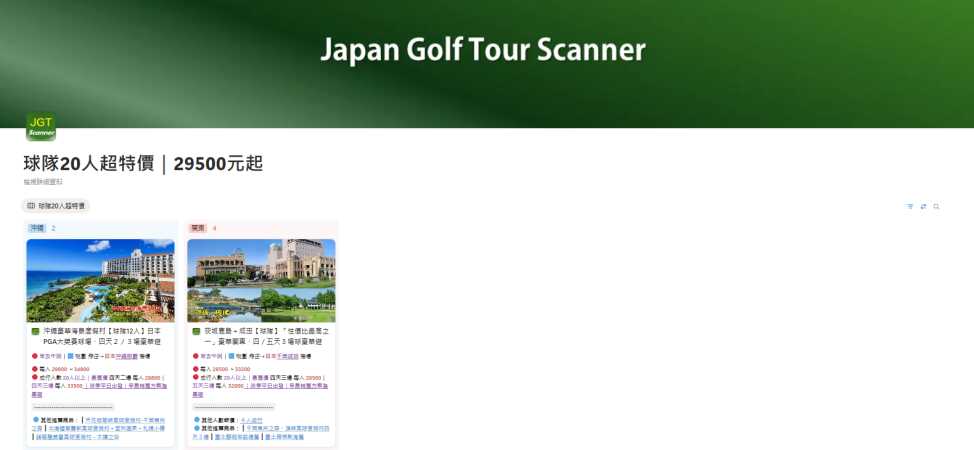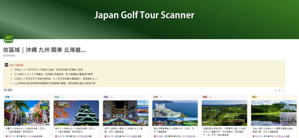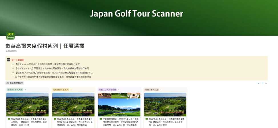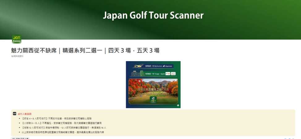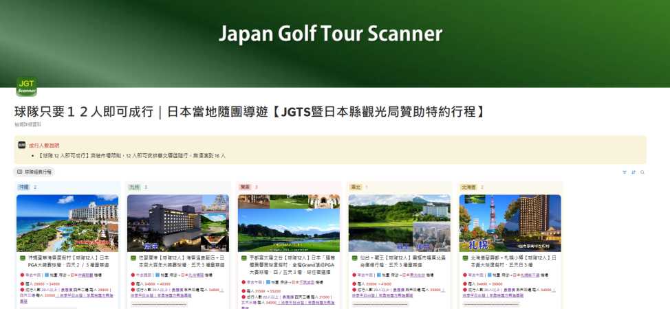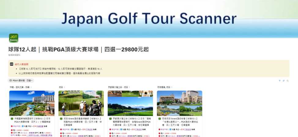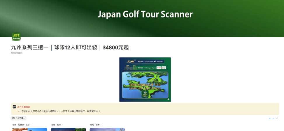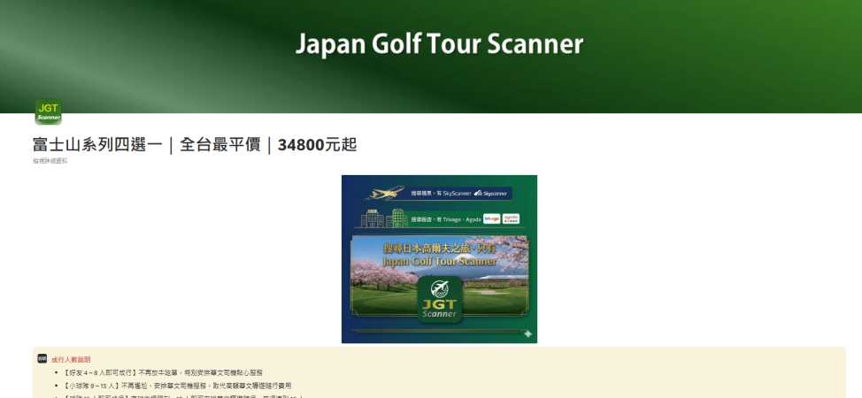 日本JGT Scanner平台為了讓海外球員有最佳的訂購流程,目前只規劃了由台灣配合的旅行社訂購,免去台灣球友來回溝通。