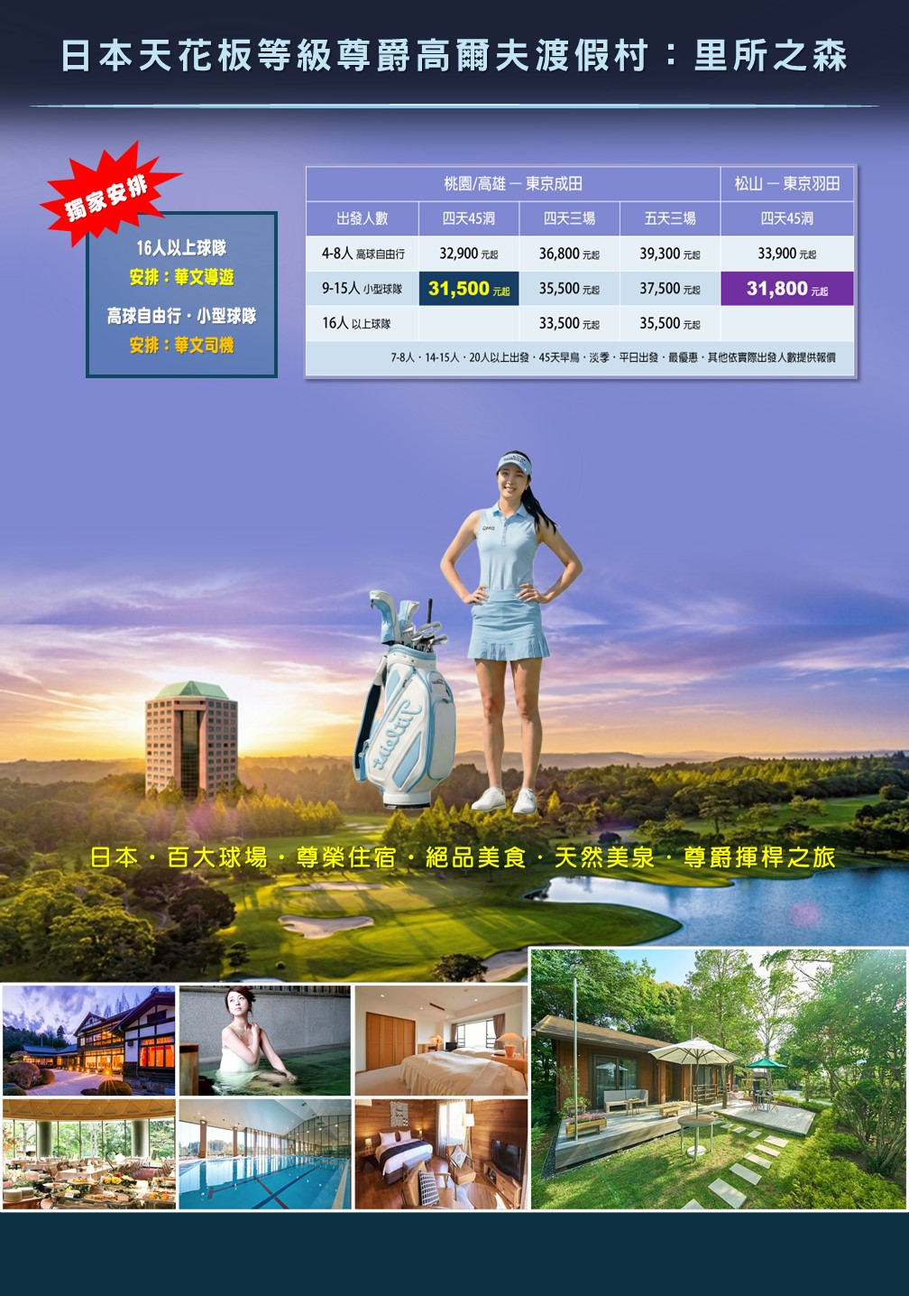 隨著接觸的球場越多,新舊球友的加入,陪同家屬的規劃,新球場的開發,已不是定型式團型能滿足;在統一旅行社的客製化行程規劃下,球友們可擁有高靈活性與自由度,無須與他人湊團,享受優閒的步調。