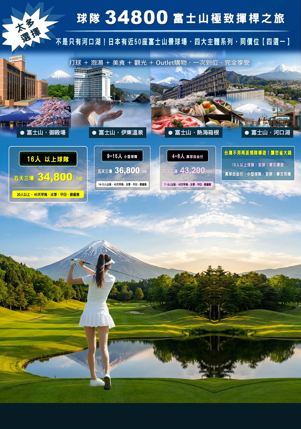 統一旅行社為球友提供了日本高爾夫最佳的選擇:經驗豐富的日本JGT Scanner平台,規劃了多樣的場地及多元的行程。