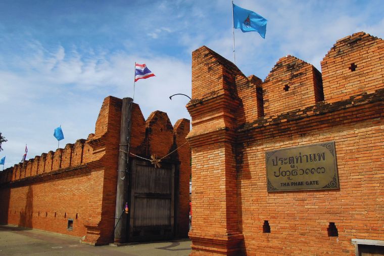 位於東邊城牆的塔佩門是現在留下非常完整的一座城門。原先,清邁古城四周都是由褐紅色磚牆圍起的兩米左右的城牆,後來,大部分的建築都在歲月的更迭中消失了,留下的塔佩門也成為清邁非常知名的景點,是這座城市地標性的存在。紅牆配藍天,清晨或黃昏人較少時十分美麗,來自世界各地的攝影師們會從不同的角度來捕捉城門美麗的瞬間。週日市場的攤位就從這裡開始,沒有集市時,遊客和當地人會在塔佩門前的廣場上喂喂鴿子,十分自在。
